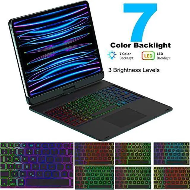7-Color RGB Backlit Keyboard with Shortcuts - Illuminated typing on a premium keyboard for iPad Pro 12.9 inch with 7 colors backlight that allow an adjustable brightness level, and a fu