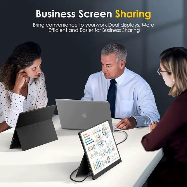 Multi-Functional Smart Cover - Magnetic leather shell of the laptop monitor expander can not only be used as an excellent protective cover for the monitor but also can be folded into a bracket for a more convenient use experience. Laptop screen extender also includes dual speakers to provide an excellent audio experience