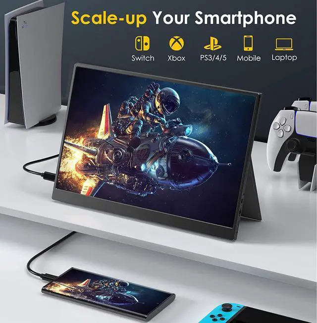 Widely Compatible - Portable laptop monitor has 2 full-function USB Type-C connections and a Mini HDMI port, which is plug and play. Only 1 USB-C cable is needed for power and display signal transmission. It can be used for laptop, PC, Mac, smartphone, Xbox, PS4/5, Switch, Steam Deck and other devices