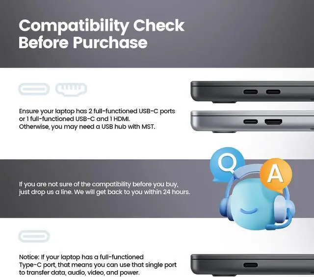 The laptop monitor is compatible with Windows, Chrome, Mac & Switch. No driver download needed. It requires 2 USB-C ports or 1 USB-C port plus 1 HDMI port or 2 HDMI ports plus 2 USB-A ports on your laptop. Please make sure your device has required ports and if it doesn't have, please contact us directly. We will offer you a solution in 24hrs.