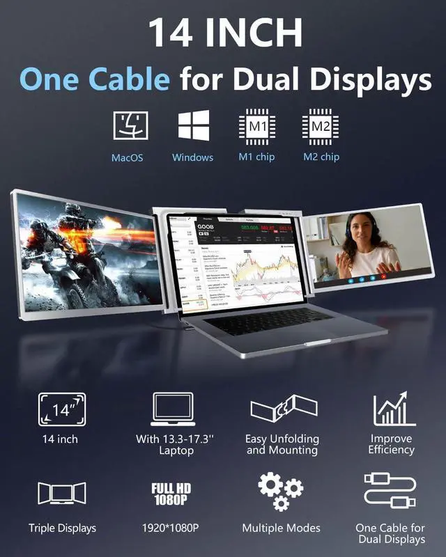 System Compatibility: Our laptop screen extender is compatible with MacBook M1 & M2 & M3. However, it is not compatible with Microsoft Surface series and Chromebook.