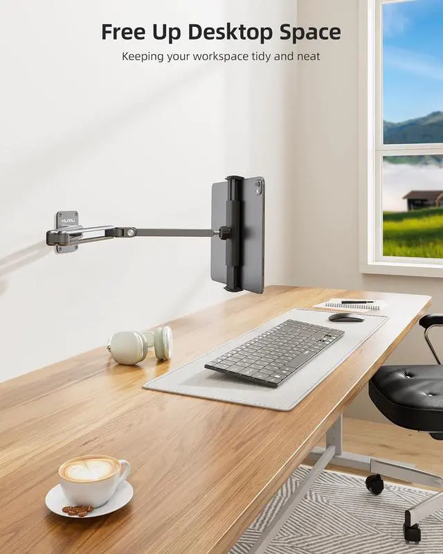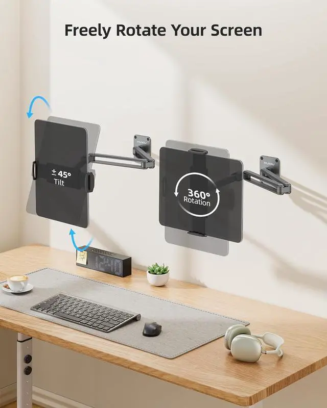 Sturdy & Stable: The tablet wall holder is made of Aluminum alloy with a smooth metallic finish, which is very strong and stable without bending risk. With a maximum weight capacity of 3.3 lbs ( 1.5 kg), ensure reliable support. KU XIU pursues higher quality and manufacturing process, so our tablet wall mount have excellent stability.