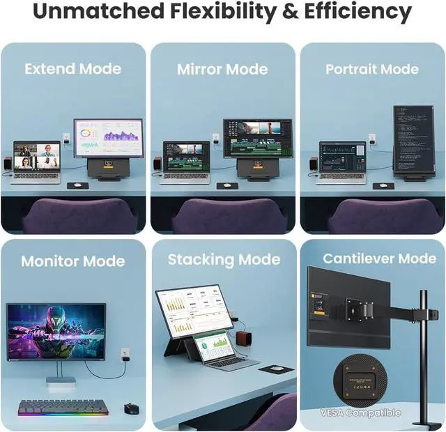 Smart Space Optimization D1's revolutionary foldable design transforms from a professional display into an ultra-slim 32.8mm portable case. The multi-functional stand serves dual purposes - providing stable support during use and converting into a protective carrying case when traveling. This intelligent space-saving solution maximizes desk real estate while maintaining complete portability