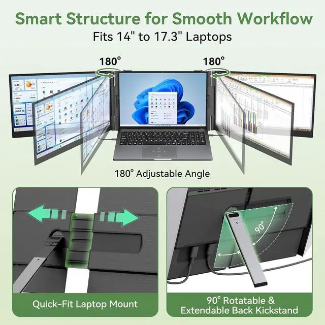 Triple laptop screen extender, Universal Compatibility & Plug-and-Play ConvenienceWorks seamlessly with 99% of devices! Compatible with Mac (M1/M2/M3), Windows, Android, Linux, and Chrome OSno drivers or extra software needed. Equipped with 2 full-featured USB-C ports and 1 PD USB-C port, it supports instant connectivity, fast data transfer, and 100W reverse charging to power your laptop while you work. All necessary cables are included in the package.