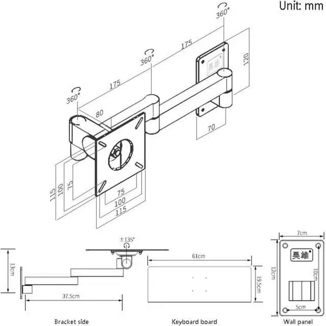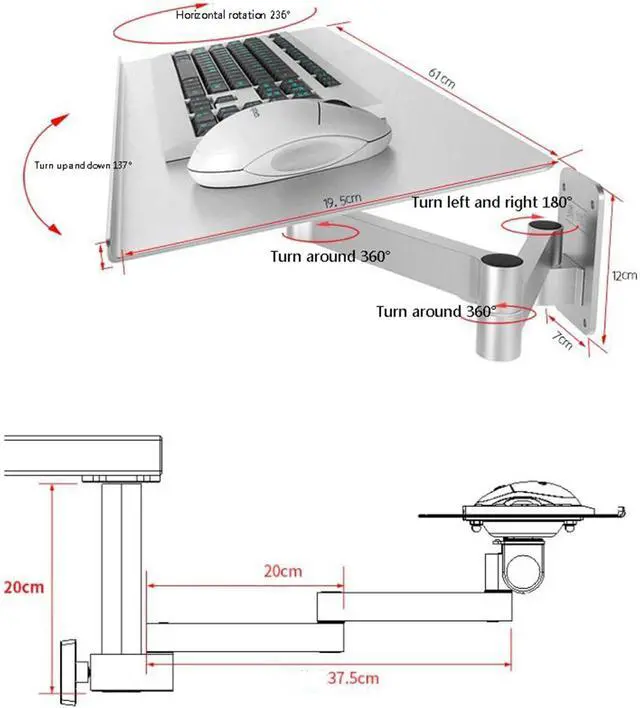 Rotation Angle: 1. 360° horizontal rotation, 135° up and down rotation Multifunctional Keyboard Stand 1.360 degree rotation, suitable for various operating habits. 2. Can be adjusted to meet your different needs 3. Change the angle to make your arms more comfortable and relaxed. 4. Fully stored in a small space, more ways to play