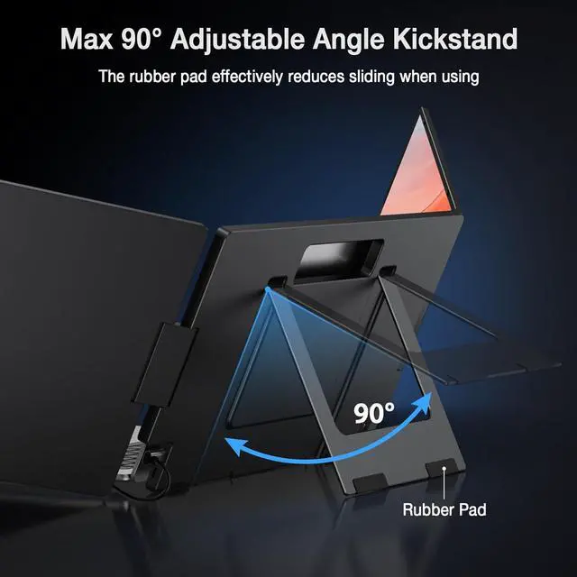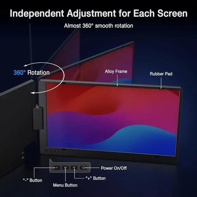 [Portable Design] This travel monitor is equipped with a stable built-in stand that can be adjusted up to 90°, providing more stable support for your laptop and screen to meet your flexible viewing needs. Each screen of this laptop display extender supports rotation from 0° to 360°, allowing you to share your screen with colleagues and friends in a more convenient manner and achieve multi-directional screen sharing.