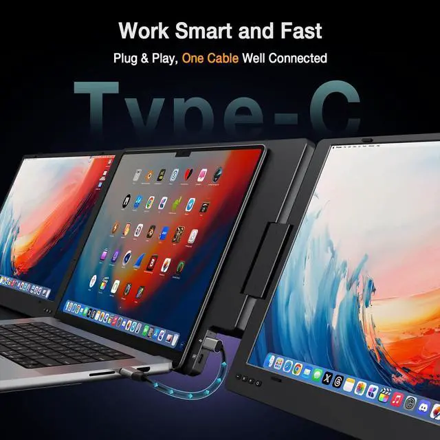 [Upgraded One-Cable Connection] This laptop screen extender uses a more convenient and powerful connection. You only need one USB C to USB C cable to connect the screen extender to your laptop, eliminating the need for complicated connection processes and redundant cables. The single-cable connection design makes it more convenient to carry and allows you to quickly set up a triple-screen display system.