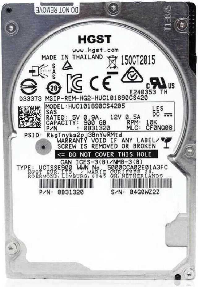 (NOT FOR HOME PC!) HGST (SAS) 2.5" Internal Hard Drive 900GB 10Krpm 12Gbs 0B31320 HUC101890CS4205