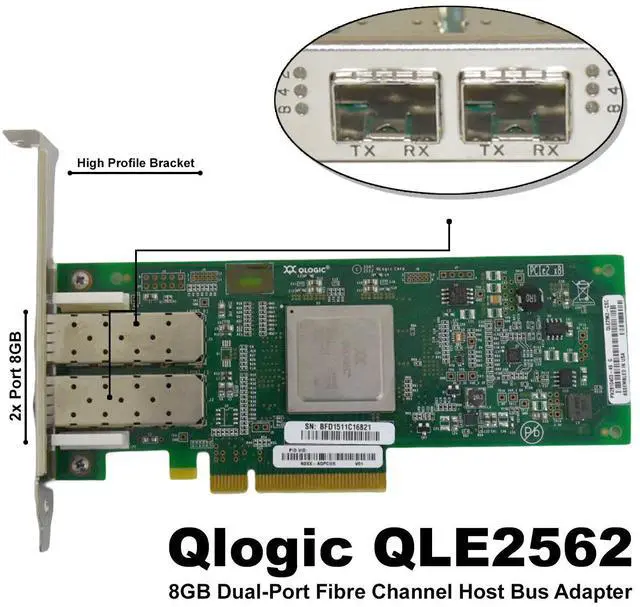 QLogic 8GB FC Dual Port HBA N2XX-AQPCI05 QLE2562-CSC 2-Port Fiber Channel Card