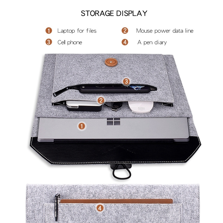 4. Made of felt cloth, light weight, fully protect the computer.