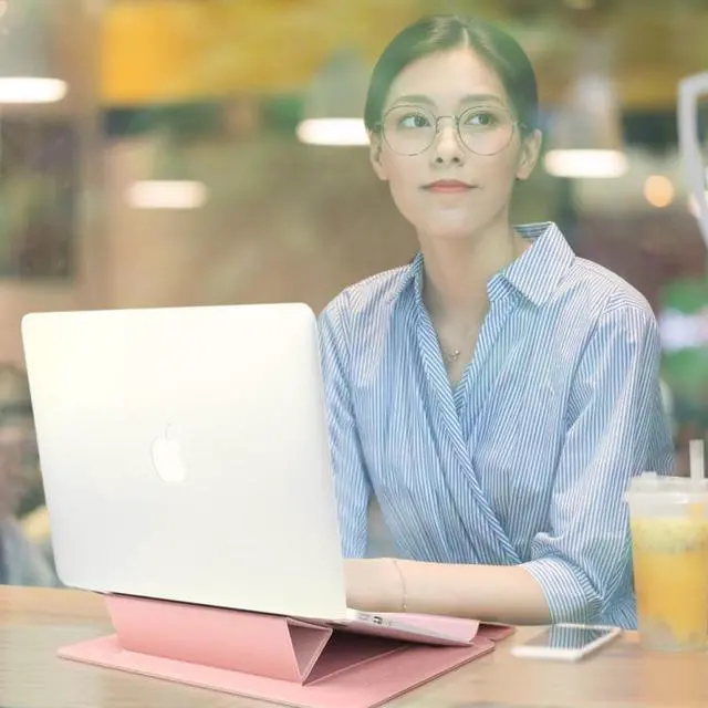 1.Breathable heat dissipation.After the stand is erected, it can effectively ventilate the notebook computer. 2.Selected pu leather, Clear texture, Feel comfortable waterproof and scratch resistant. 3.Hand rest design,Humanized design,bid farewell to the "keyboard player". 4.Business trip/travel easy to carry,lightweight design bring more convenience and fun to travel. 5.Magnetic button design,strong adsorptionprevent the laptop from falling.
