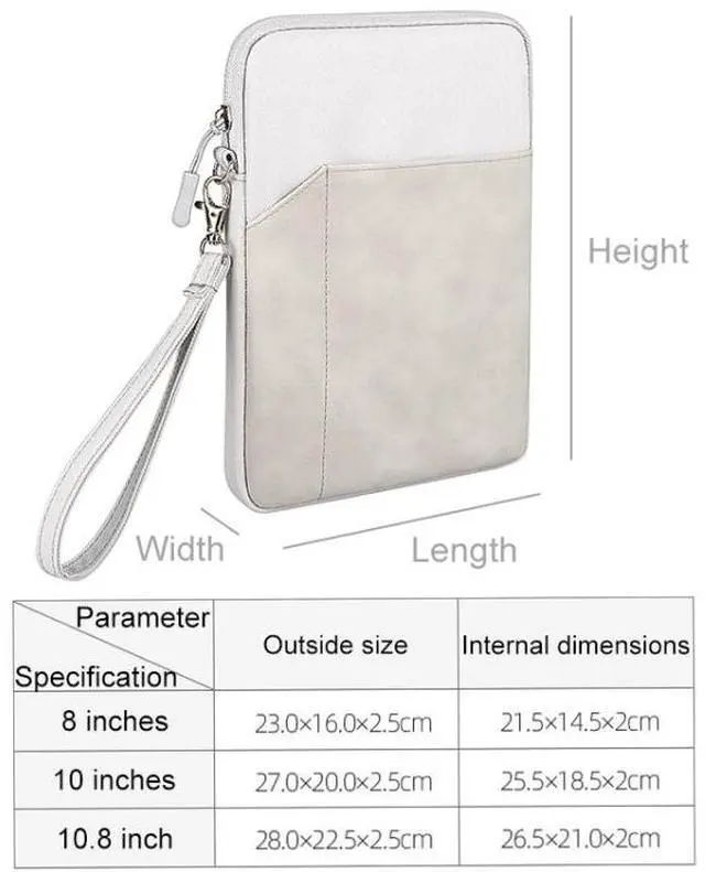 8. Internal dimensions: 8 inch 21.5x14.5x2cm, 10 inch 25.5x18.5x2cm, 10.8 inch 26.5x21x2cm