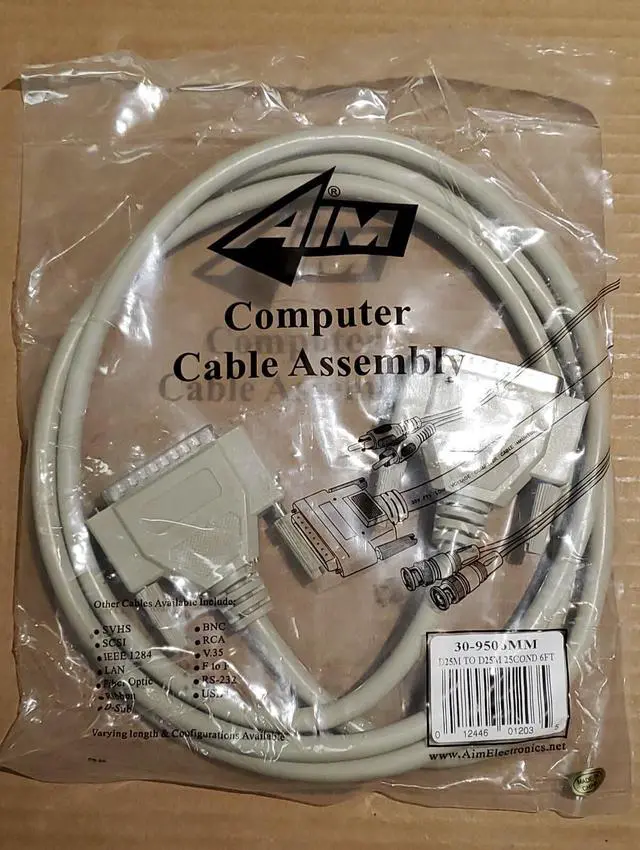 AIM Computer Cable 30-9506MM 6 FT D-25M To D-25M 25 Cond Feet Male To Male