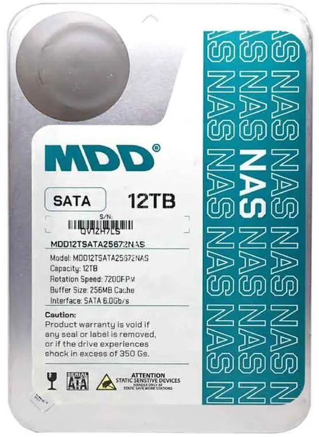 MDD 12TB 7200RPM 256MB Cache SATA 6.0Gb/s 3.5" NAS Hard Drive - 3 Year Warranty