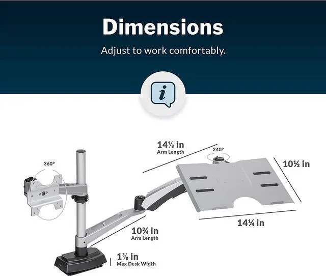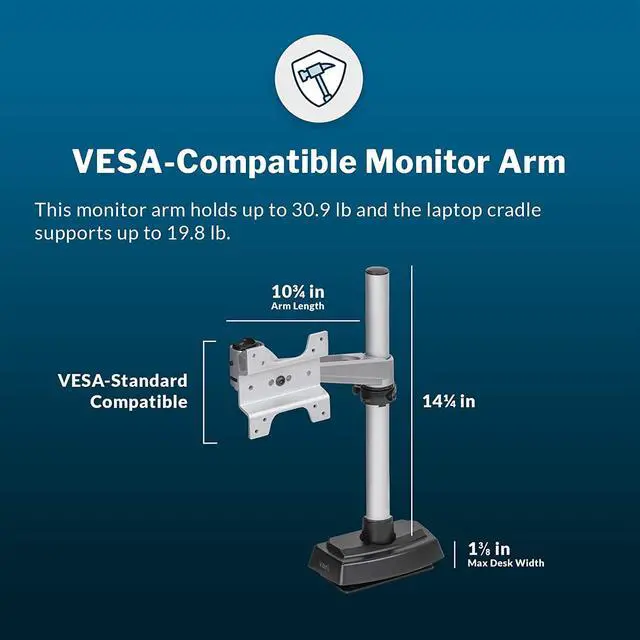 Easy Assembly - The monitor and laptop riser is easy to install, attaching to any desk or table up to 1.375 thick. The universal desk clamp frees up space and adds organization to your workstation.