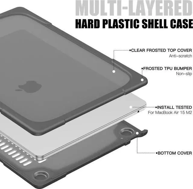 Shockproof Protective Case for MacBook Air 15 inch M2 Chip with Liquid Retina Display & Touch ID 2023 Release (model: A2941 - MQKR3LL/A, MQKW3LL/A, MQKP3LL/A, MQKU3LL/A, MQKT3LL/A, MQKX3LL/A, MQKQ3LL/A, MQKV3LL/A). WARNING: This case is NOT compatible with other model laptops.