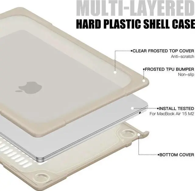 Shockproof Protective Case for MacBook Air 15 inch M2 Chip with Liquid Retina Display & Touch ID 2023 Release (model: A2941 - MQKR3LL/A, MQKW3LL/A, MQKP3LL/A, MQKU3LL/A, MQKT3LL/A, MQKX3LL/A, MQKQ3LL/A, MQKV3LL/A). WARNING: This case is NOT compatible with other model laptops.