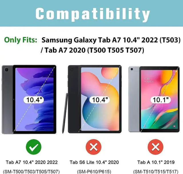 COMPATIBILITY: Specially designed for Samsung Galaxy Tab A7 10.4 inch 2022/2020 Release, Models: SM-T509/SM-T503/SM-T500/SM-T505/SM-T507.