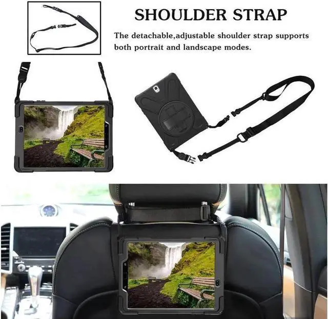 CARRY IT AROUND WITH EASE: The rugged Nonslip protective tablet case comes with a detachable and attachable shoulder strap, so that you can carry it around with ease, or hang it on a hanger in your house or car.There is also a adjustable hand strap, which allows you to hold your tablet securely with one hand.