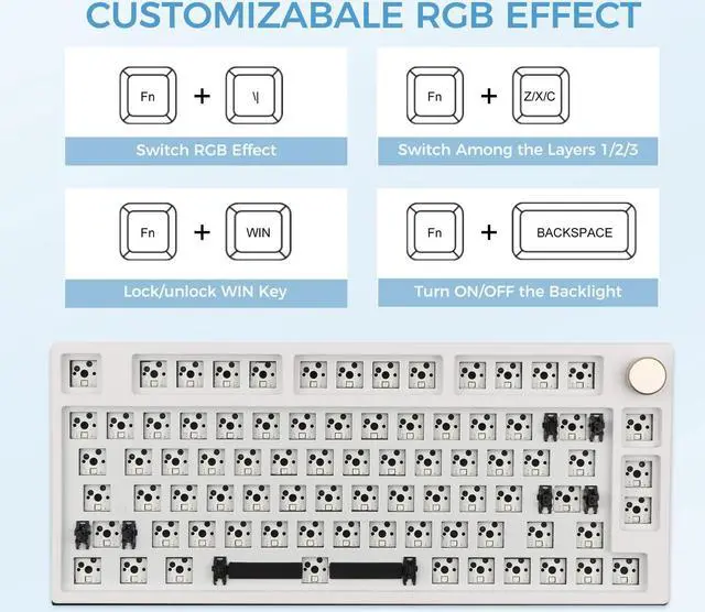-1*Keyboard Customized Kit (Bottom Case, PCB, 2*Mute Foams, Stabilizers, 1*Positioning Plates, 1*Battery)