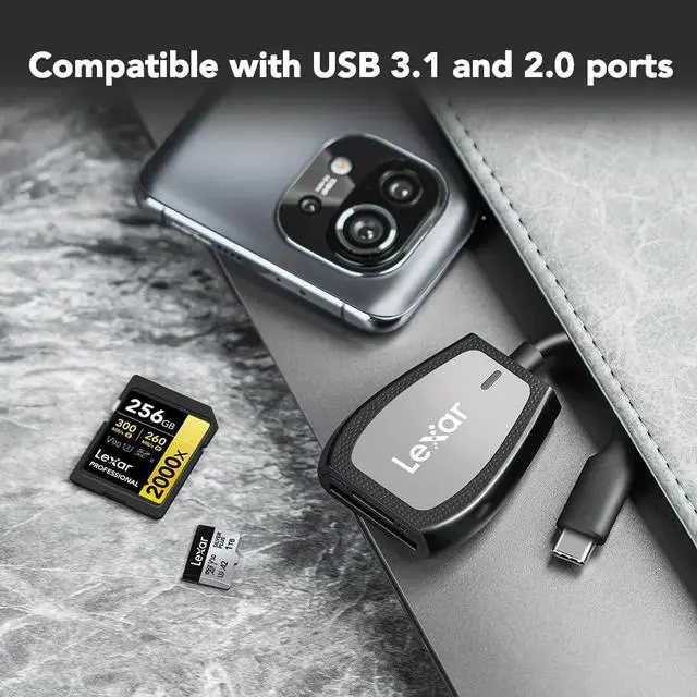 Lexar Professional USB 3.2 Type-C Dual-Slot Reader Supports SD and microSD UHS-II Cards Up To 312MB/s Read (LRW470U-RNHNU)