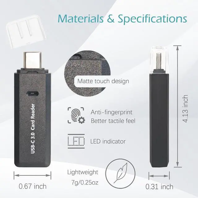 Ultra-Lightweight and Compact Design: Weighing only 7g and designed with a portable form factor this card reader is incredibly easy to carry wherever you go. Its sleek and minimalistic build ensures hassle-free storage and usage anytime anywhere.