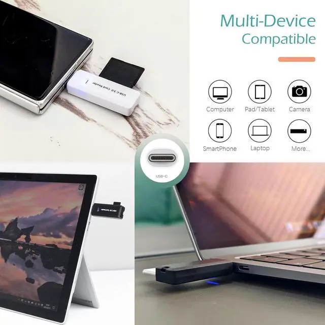 Universal USB-C Connectivity: Featuring a modern USB-C interface this card reader seamlessly connects to smartphones tablets laptops and other Type-C supported devices. Enjoy broad compatibility without the need for adapters or additional drivers.
