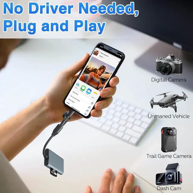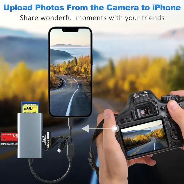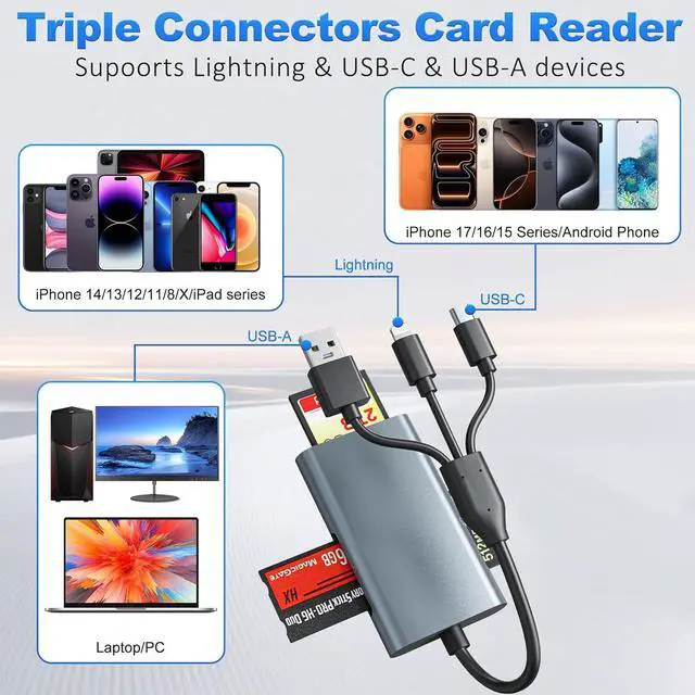 All-Metal Durability & Triple Interface Flexibility Crafted with a premium aluminum alloy shell this Memory Stick Pro Duo adapter ensures exceptional durability and efficient heat dissipation. It features three versatile interfacesLightning USB-C and USB-Afor seamless connectivity with iPhone iPad Android devices PCs and Macs eliminating the need for multiple adapters. 4-in-1 Multi-Card Reader for Professional Workflow Equipped with four dedicated slots this robust metal card reader supports SD Micro SD Memory Stick Pro Duo Memory Stick Pro-HG Memory Stick Duo and xD-Picture Card. It is the ideal Sony Cybershot card reader and essential accessory for DSLR cameras providing reliable access to your photos and videos.