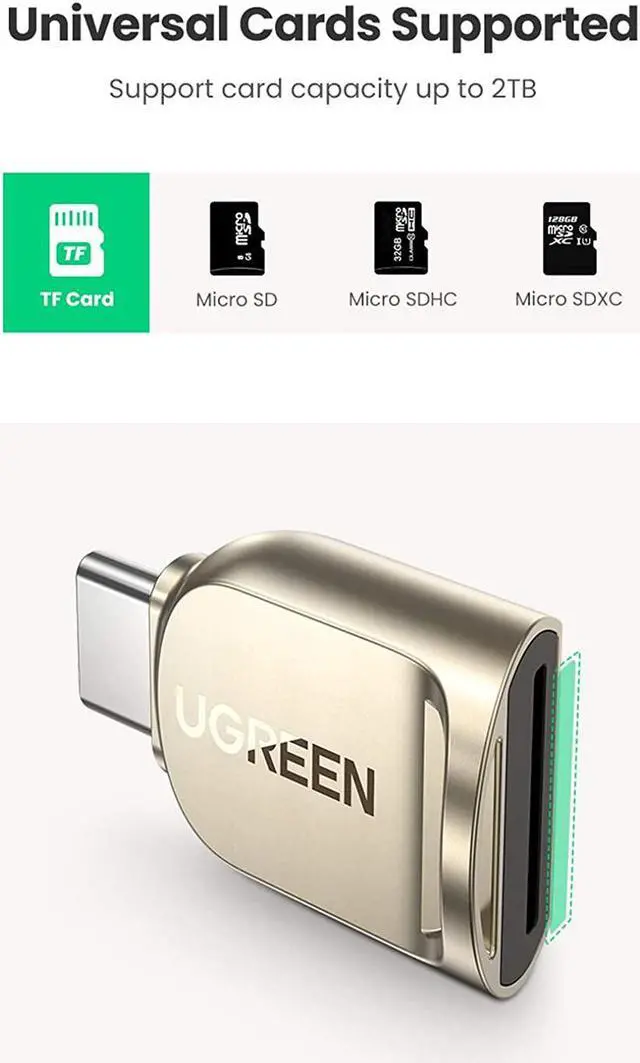 Materials: The Micro SD to USB C is made of premium zinc alloy material which makes it easier to dissipate heat on the surface than aluminum alloy to protect the chip and prolong its service life. Also the zinc alloy case withstands wear and tear and reduces surface damageWide