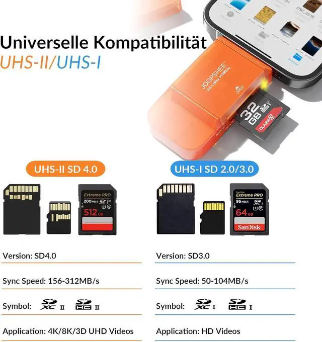 High Speed: SDXC UHS-II card reader with both standard and microSD form factor support with speeds of up to 312MBps. Enjoy data transfers 20% faster than ordinary UHS-I card readers.