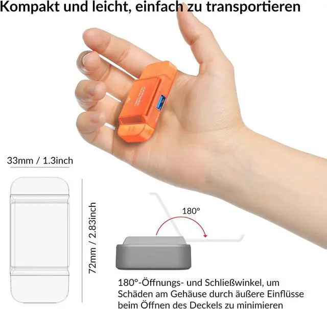 Plug-and-Play Simplicity: No Wi-Fi software or drivers required! Enjoy instant file access with this portable card reader. Built-in dustproof and splash-resistant caps protect ports during travel or storage ensuring durability and hassle-free use.