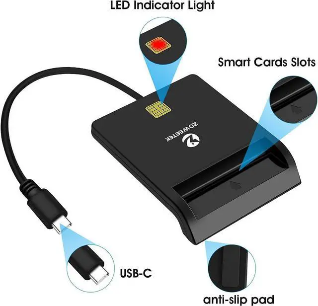 USB-C/Type C CAC Reader. Supports Government ID ActivClient AKO OWA DKO JKO NKO BOL GKO Marinenet AF Portal Pure Edge Viewer ApproveIt DCO DTS LPS Disa Enterprise Email and etc. CAC chip cardsCompatible with Windows 10/11 Mac OS 10.15 or above Linux. Easy to use.