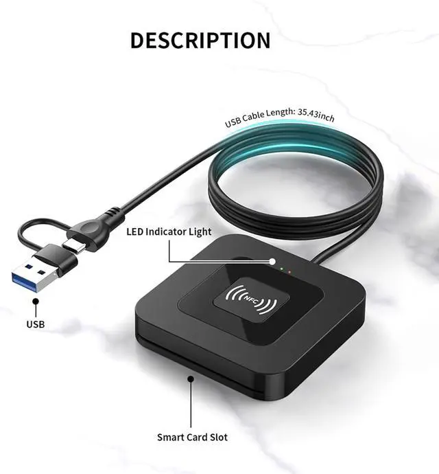 Dual Interface Smart Card Reader: Supports both traditional contact-based CAC cards and new contactless NFC cards. Simply tap to read compatible NFC IDs access cards or devices in addition to standard inserted military and government smart cards.