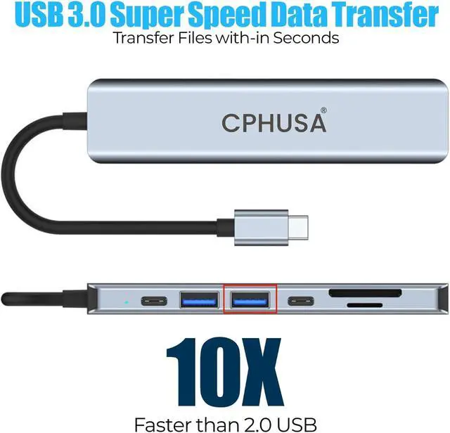 FAST CHARGING & HIGH-SPEED USB: The USB-C PD passthrough port supports up to 100W laptop charging while two USB 3.0 ports offer up to 5Gbps data transfer for external drives and peripherals. The USB 2.0 port is perfect for keyboards mice or printers. Power and sync multiple devices at once.