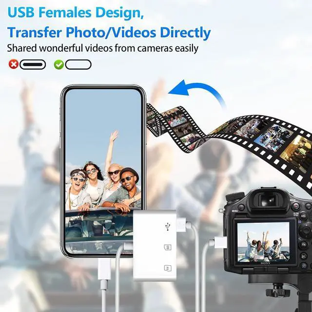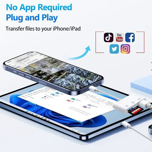 UNIVERSAL COMPATIBILITY: This SD Card Adapter designed for iPhone between 5 to 14 including iPad mini5/ mini6/ 7/ 8/ 9/ Air3/ Air4/ Air 5/ Pro1/ Pro2/ Pro M2/ Pro M4/ Pro 10.5 in/ Pro 12.9 in iPod touch5 etc. Adapter all Lightening connector devices.