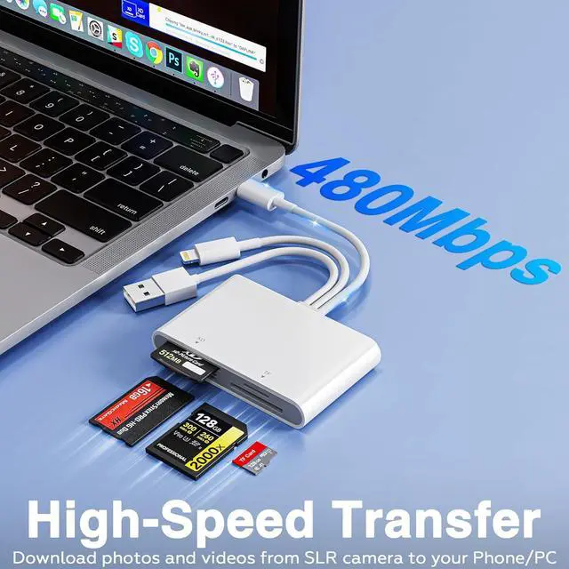 High-Speed 480Mbps Data Transfer: The iPhone SD card reader delivers fast file transfers at speeds up to 480Mbps making it ideal for photographers and videographers handling large RAW photos 4K video and professional media. Quickly import content from your camera to your device or back up files to a memory card.
