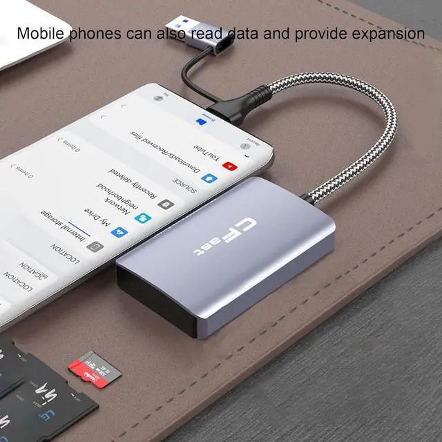 CFast Card Reader: CFast reader comes with USB C and Type-C port makes it ideal 1-in-2 option for photographers and video graphers to carry around. Read/write CFast card simultaneously easily to download pictures and videos from your card to computers via the USB C or Type-C interface offer you versatile transfer solution between multi-format memory cards and PC or Phone.