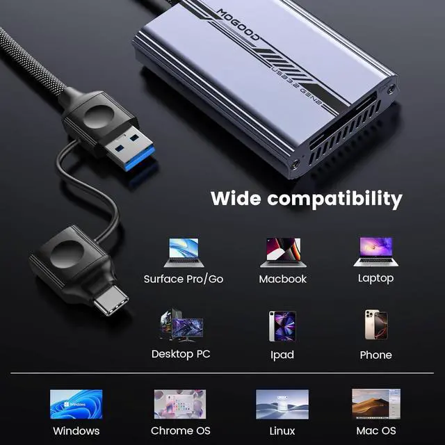 Blazing-Fast 10Gbps Transfer with Unwavering StabilityMOGOOD CFexpress Type B Card Reader offers an ultra-fast maximum transfer speed of 10Gbps (equivalent to 1250MB/s) enabling the transfer of your work in just a matter of seconds. This not only supercharges your work efficiency but also guarantees a stable and reliable transfer process. USB-C/USB-A Type B CFexpress AdapterMOGOOD Type B CFexpress Card Reader is highly portable and compatible. It works with PC MacBook iPad iPhone and USB-C/USB-A devices. Its compact design and long cable allow effortless use with desktops and laptops facilitating your work anytime. Broad CompatibilityMOGOOD CFexpress Type B Card Reader can work well with the majority of operating systems including Windows XP/Vista/7/8/ 8.1 /10 Mac OS and so on.