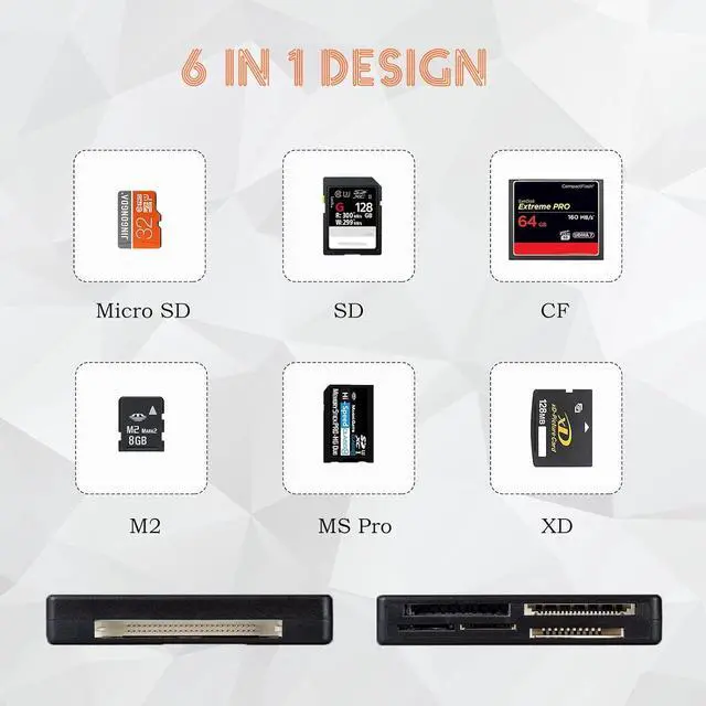 Universal Compatibility - The 6 in 1 card reader compatible with standard USB-A port work for computers and laptops and all devices with USB port. Portable & Stability - It's very easy to carry with you use GT926Z powerful chip solution bring more powerful data transmission capacity and less heat generation.