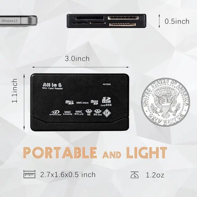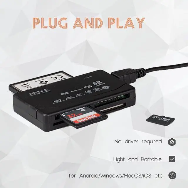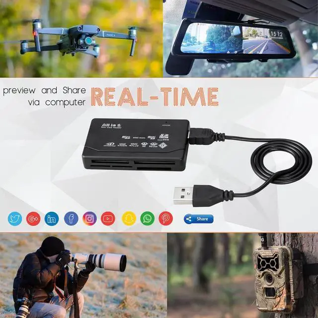 Plug and Play - SD/Micro SD and USB flash disk card reader for computer and laptop. This all in 1 card reader could be transmitted without driver or any software. This card reader Win7 8 10 11 operating systems. 6 in 1 Design - Build-in SD/Micro SD/CF/XD/MS-Pro/M2 card slot also USB 2.0 Plug Cable. It could easily transfer the file you need between different devices or review the photos/videos quick. Preview and Share - This SD card reader allowed you quick preview photos from professional camera or special camera and very easy to share photos and videos with family or friends anytime and anywhere.