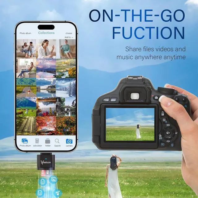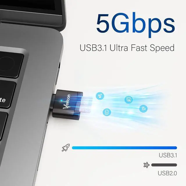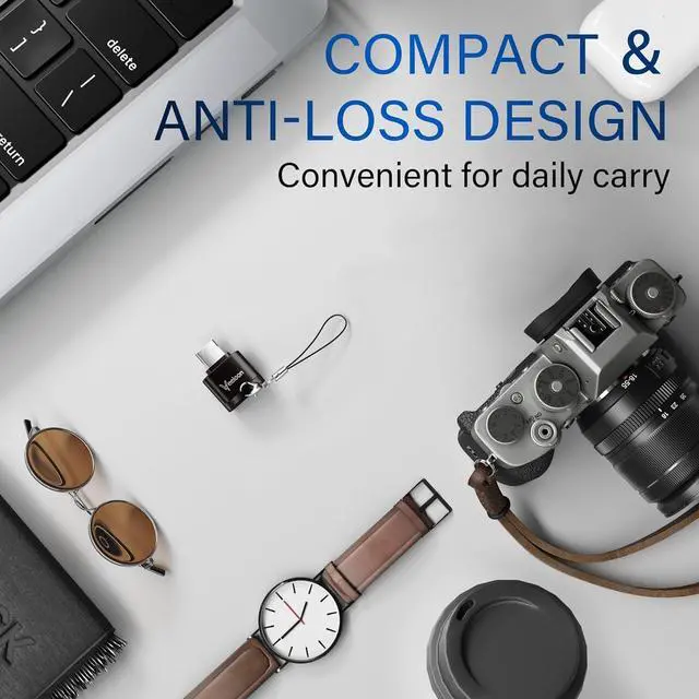 OTG: This SD Card Reader is used for reading writing SD cards and can be connected to USB devices. Transfers data at speeds up to 104MB/s with UHS-I standard making it 10 times faster than USB 2.0. Supports ON-THE-GO technology. Easy to transfer photos videos and files between Type-C devices and a micro SD card without the need for drivers or software. Prevent OverheatingMade with a zinc alloy metal casing it is aesthetically pleasing and durable. The high-quality materials make it easier to dissipate heat on the surface than aluminum alloy and prevent excessive heat generation during use avoiding potential safety hazards. The memory cards are not includedCompact and Portable DesignThumb-sized compact and portable featuring an anti-loss hook design that allows you to carry it along with your keys and wallet. The built-in blue indicator light makes it easy to check the working status of the device. To meet your diverse needs we offer a USB C to USB A adapter accessory for your selection. You can connect it to this card reader for use with desktop computers speakers in-car media players and more. Wide CompatibilityThis Micro SD card reader is suitable for devices equipped with USB-C ports like laptops tablets iPhone 15 /15 pro /15 pro max /15 plus and other smartphones.