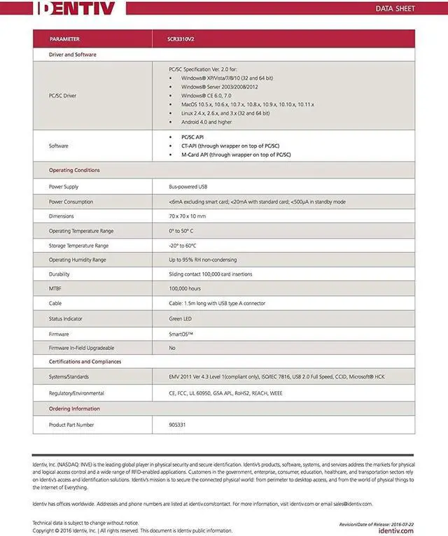 • Identiv SCR3310v2.0 USB Smart Card Reader USB-C