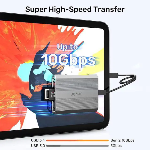 CFexpress Type A/SD Card Reader: This professional 2-in-1 Dual-Slot Card Reader is compatible with CFexpress (Type A) and SD 4.0 cards it provides great convenience for those who love taking photos or videos and using CFexpress cards. It's the ideal CFexpress card adapter for photographers and videographers to carry with them! 10Gpbs Super Speed Data TransferUsing USB 3.2 Gen 2x1 technology supports maximum transfer speed up to 10Gbps(1250MB/s) backward compatible USB 3.1 Gen 1 (USB 3.0 ). Plug and Play whether it's high-resolution photos HD videos or other large files they can be transferred at blazing speeds saving you valuable time.