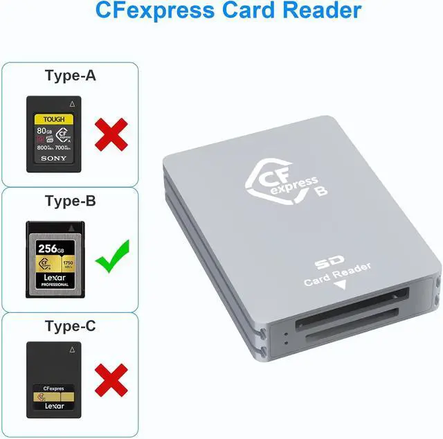 Professional CFexpress Type B/SD Card Reader: The dual-slot professional CFexpress card reader is compatible with both CFexpress (Type-B) and SD cards making it the ideal card reader for photographers to carry around. This cf express cards type b reader adds a SD slot providing a great convenience for those who love photography or videography and use CFexpress card. 10Gpbs Super