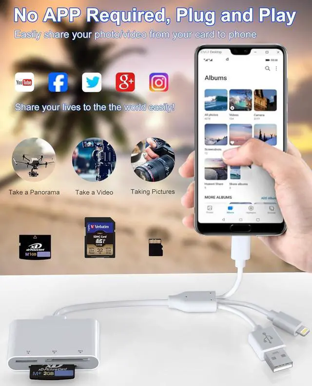 Expanded Storage: Not just a memory card adapterthis innovative SD card reader for iPhone enables two-way transfers. Move photos/videos from TF/SD/XD cards to your iPhone or free up space by transferring files from your iPhone back to the memory card. Perfect for videographers managing limited Phone device storage. Supports High-Capacity Cards up to 2TB: Handle massive files effortlessly with this XD memory card reader supporting read storage up to 2TB. Ideal for memory cards from GoPro drones dash cams digital cameras and surveillance devices. Whether reading XD card or smartphone back to the memory card this reader ensures broad utility.