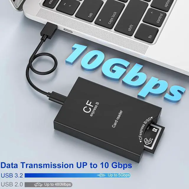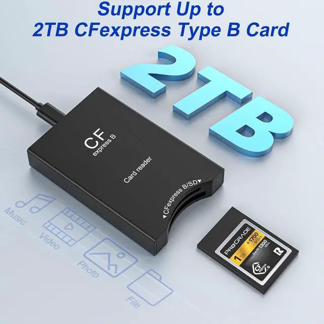 10Gbps High Speed Transfer + 2TB Extra Large Memory - The cf express type b memory card reader data transfer speed is up to 10Gbps. Whether it's photos videos or other large files they are transferred at a blazing fast speed saving you valuable time. In addition the read memory is up to 2TB so there's no need to worry about transferring large files and videos! Perfect for photographers editors filmmakers etc. who need to transfer large amounts of files quickly! Smart Chip Design - The sd to cf express type b adapter is built-in with an independent smart chip this ensures stability and security during data transmission no lag or delay during transmission no damage to your file data safe and reliable.