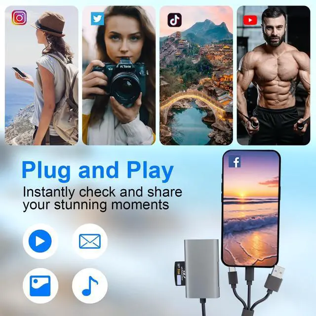Data Transfer: Supports data transfer rates up to 480Mbps photos are transferred instantly and videos don't wait. Simply insert the card to use; no drivers or apps are required truly achieving plug and play making creation and sharing effortlessSupports Multiple Card Types Up to 2TB