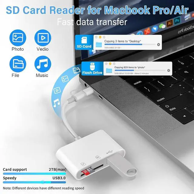 Format Support: This memory card reader supports various SD card and micro SD card including SD SDHC SDXC MicroSD. It accommodates standard photo formats such as JPEG and RAW as well as 4K video formats like H. 264 and MPEG-4. Perfect for photographers seeking high-quality data transfer with an adapter for digital camera to iphoneUSB