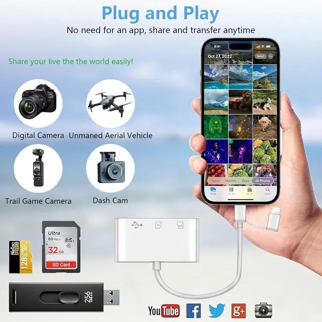 & Play: Experience immediate access to your photos and videos with our sd card reader usb c. No application installation is neededsimply connect the card reader to your iPhone or iPad and wait just 3-5 seconds. Youll have instant access to share precious moments with family and friends using this efficient SD card adapter for iPhone