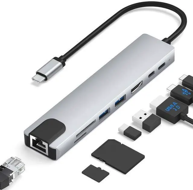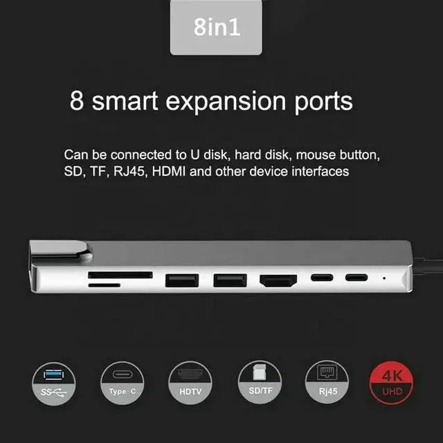VERSATILE CONNECTIVITY: 8-in-1 USB-C hub featuring HDMI USB 3.0 ports SD/TF card readers and ethernet port for comprehensive device connectivity4K